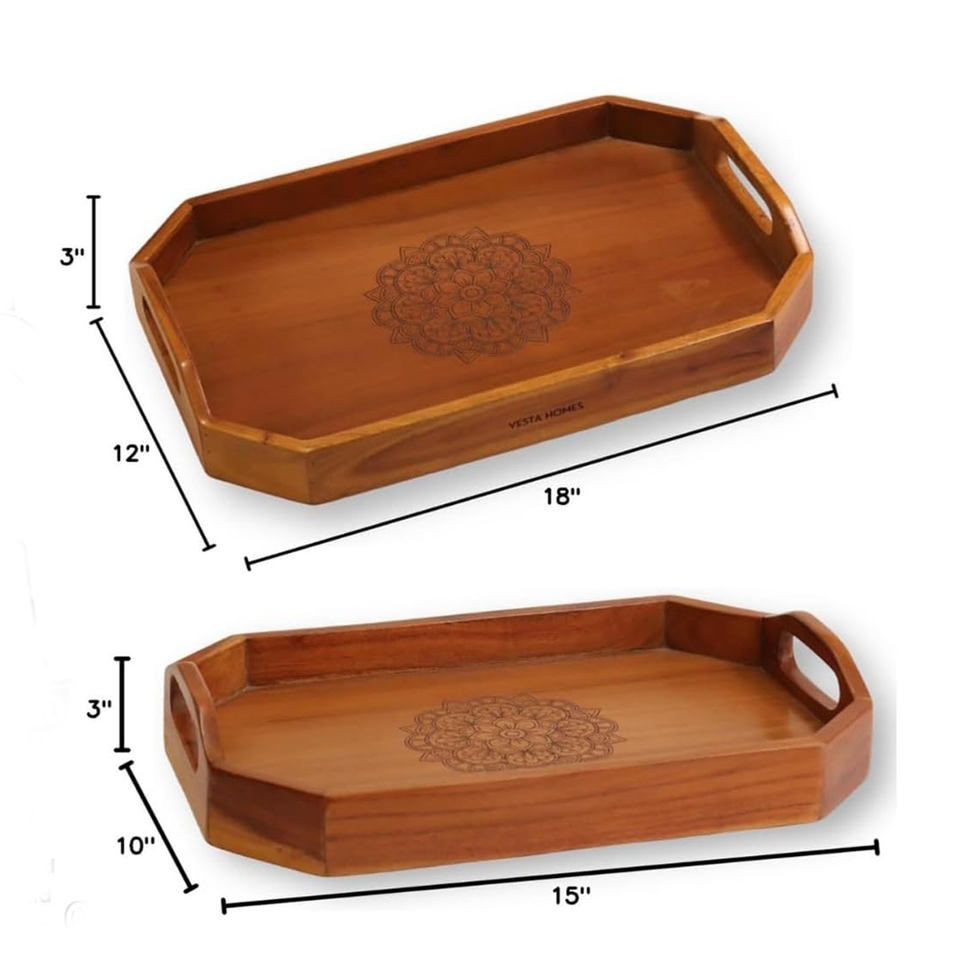 Nombre del producto:Bandeja de servicio de madera grande con asas L Juego de 2