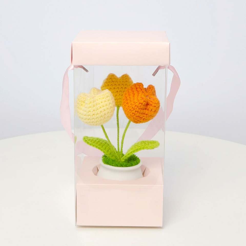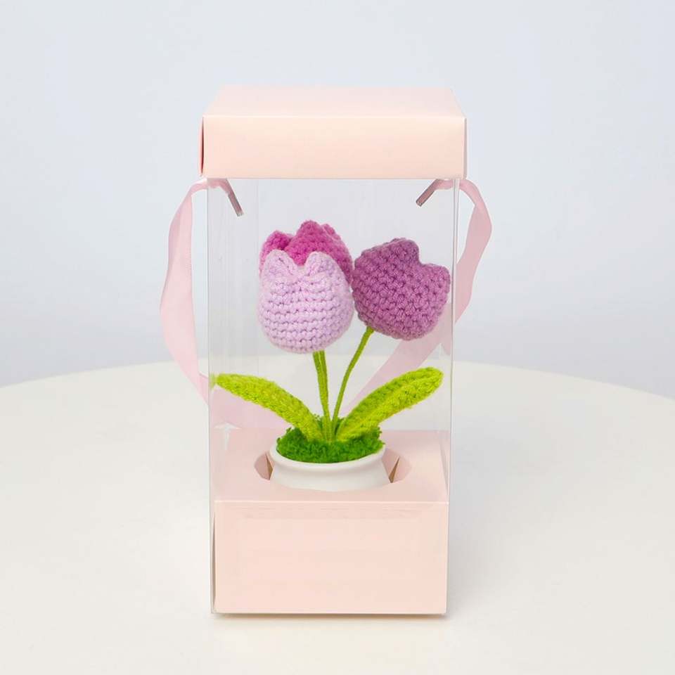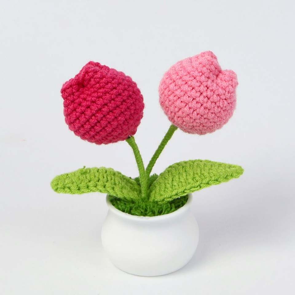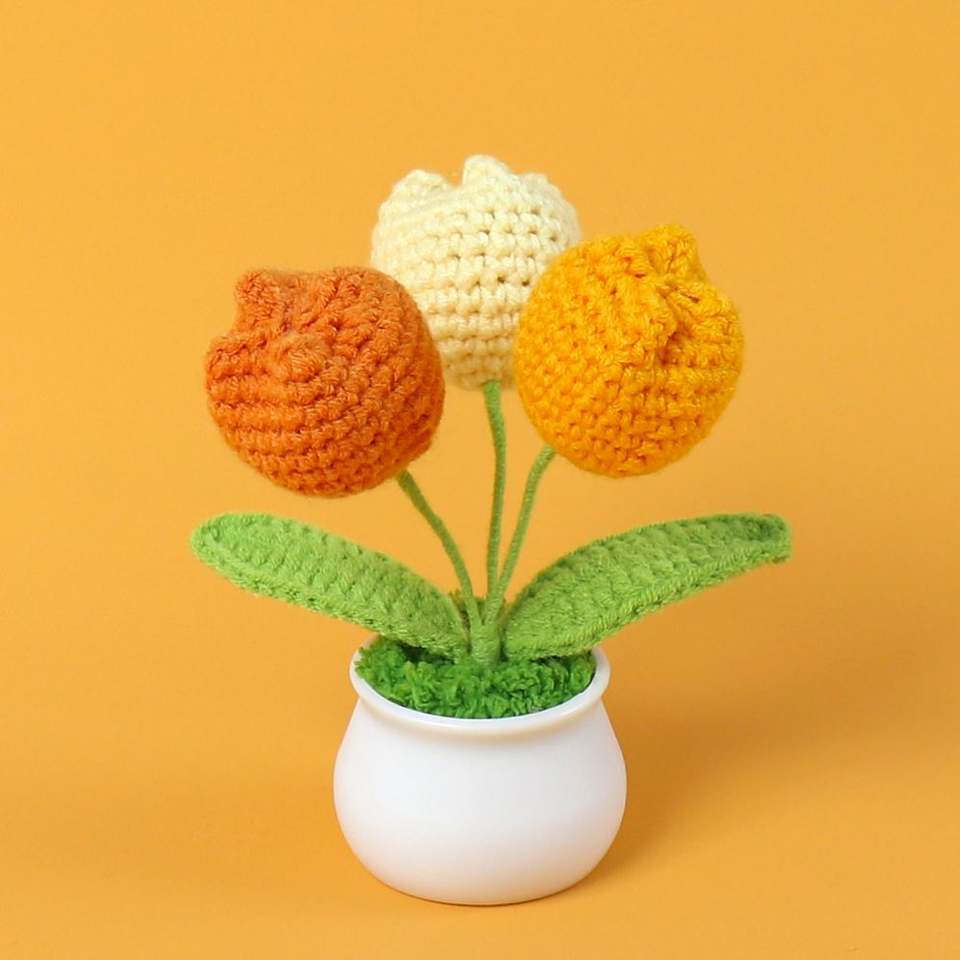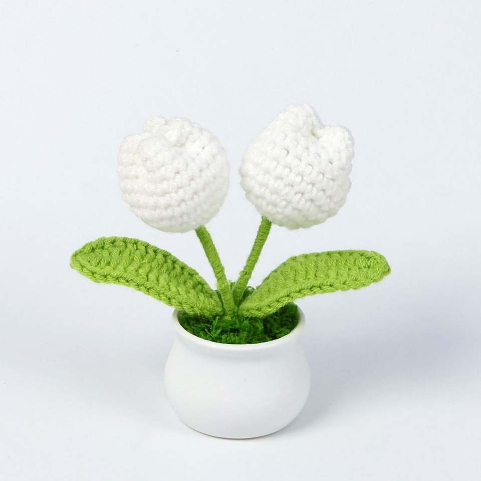 Flor de Tulipán Tejida a Crochet de Alta Calidad, en Maceta Pequeña, Decoración para Auto u Oficina, Regalo para Navidad, Halloween o Cumpleaños