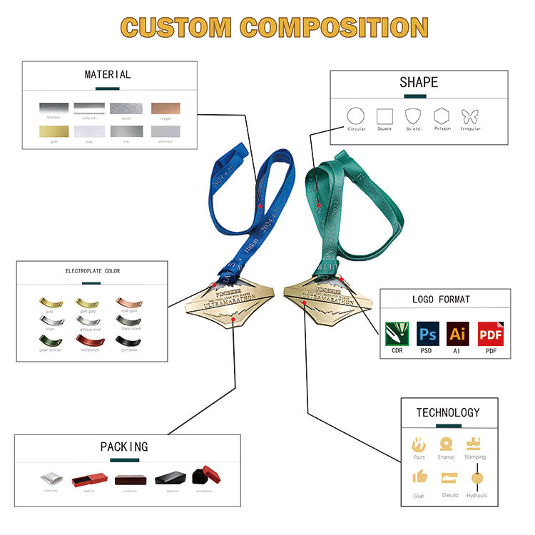 Medalla Deportiva de Aleación de Zinc de Alta Calidad con Forma de Mapa de Ruta de Carrera, Medalla de Maratón