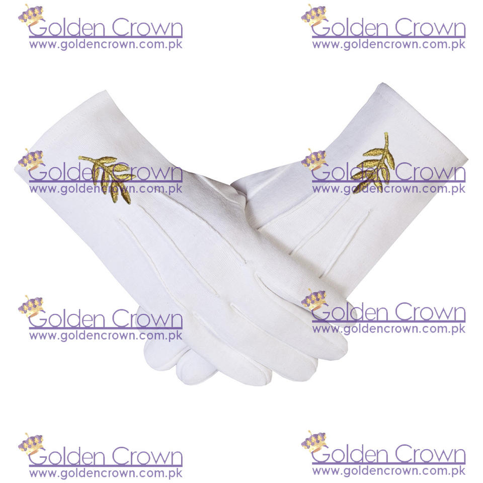 Guantes de algodón blanco con bordado a máquina de hoja de Acacia masónica de alta calidad | Proveedor de guantes de algodón Masonic Regalia