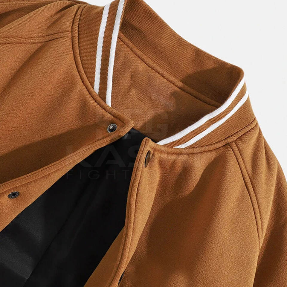 Chaqueta Varsity de Hombre de Alta Calidad en Algodón/Lana con Cuello Alto y Logotipo Frontal Diseñada para Mantenerte Cálido y Elegante Durante el Invierno