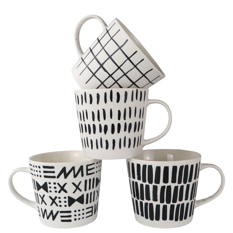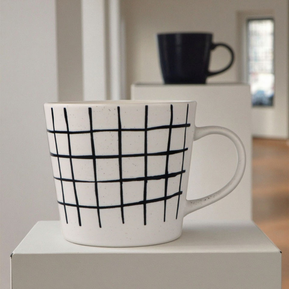 Tazas de cerámica mate de alta calidad, Color blanco pintado a mano, venta al por mayor, diseño geométrico recto, tazas de café, regalo