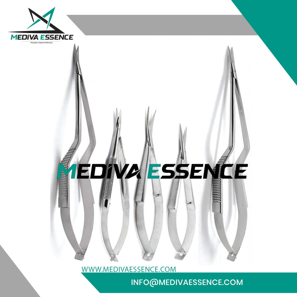 Juego de Tijeras Castroviejo Yasargil de Acero Inoxidable de Alta Calidad, 5 Piezas, Instrumentos Quirúrgicos de Oftalmología