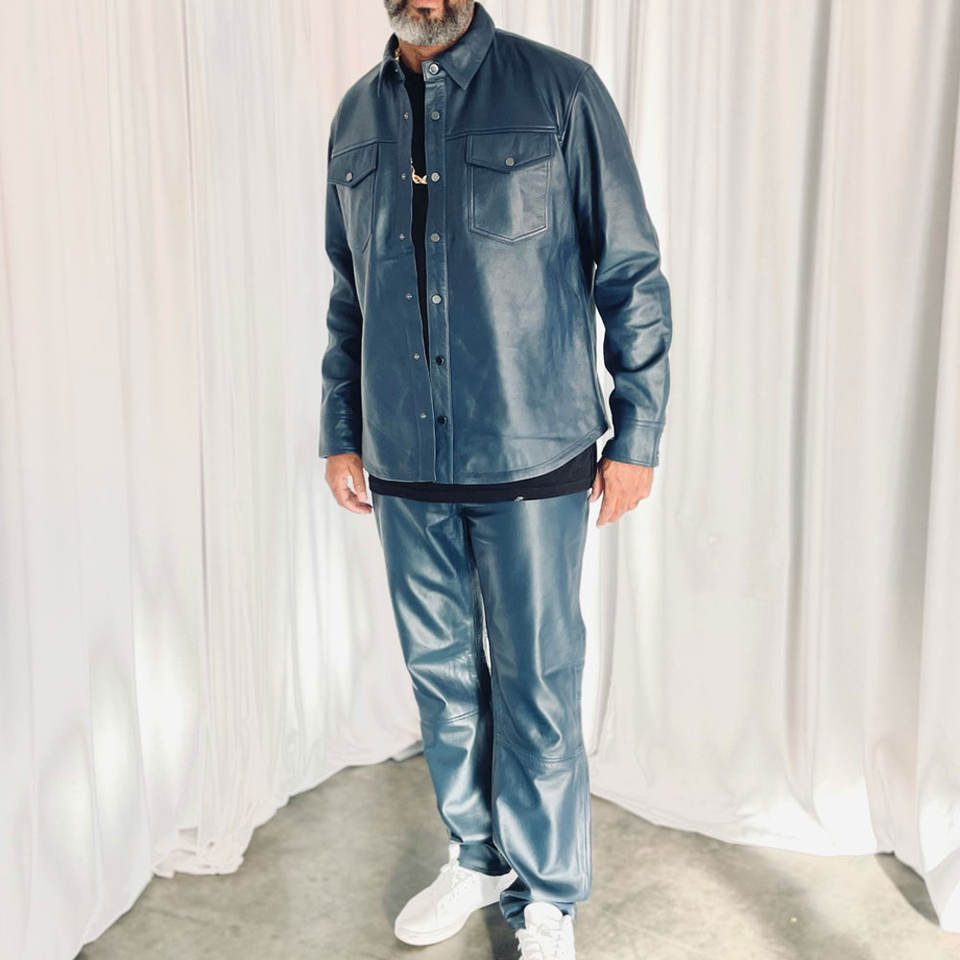 Conjunto de Chaqueta y Pantalón de Cuero para Hombre de Alta Calidad