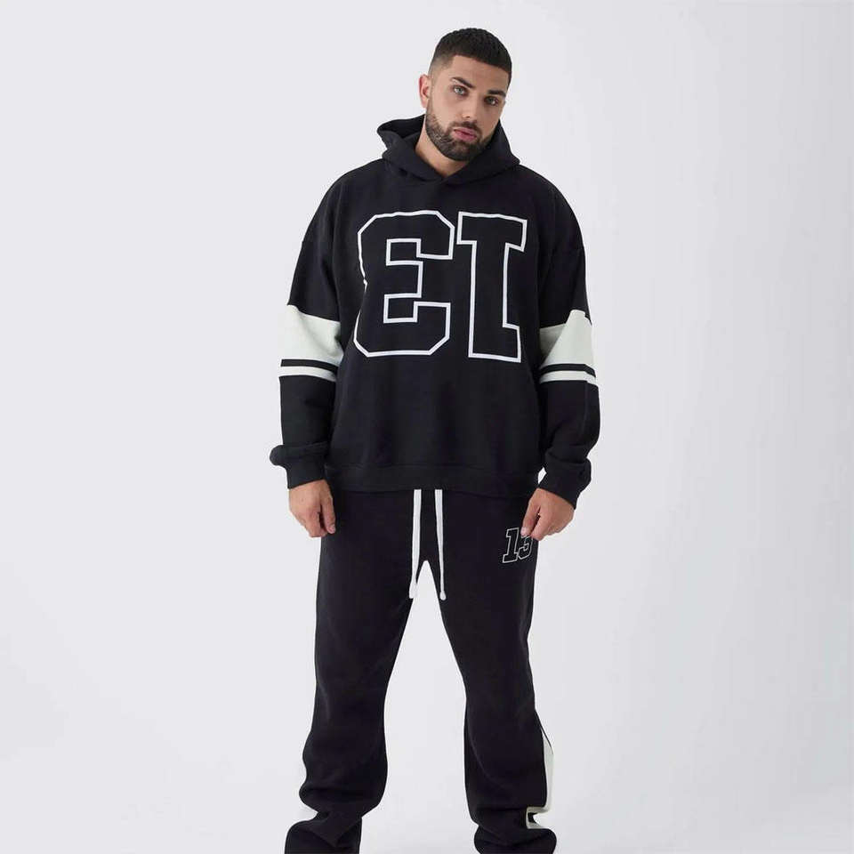 Sudadera de Alta Calidad para Hombre, Personalizada, con Hombros Caídos, Apliques, Parches Bordados, Cierre con Cordón, Transpirable, Invierno, 100% Algodón