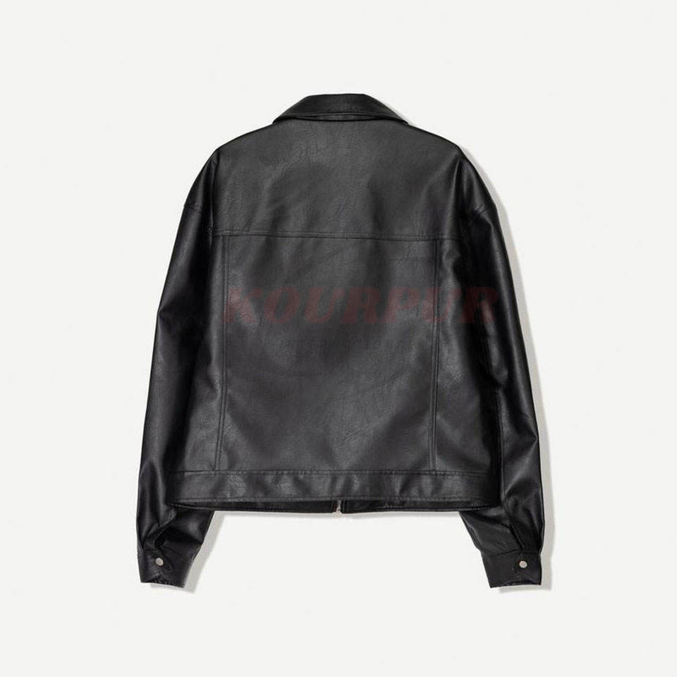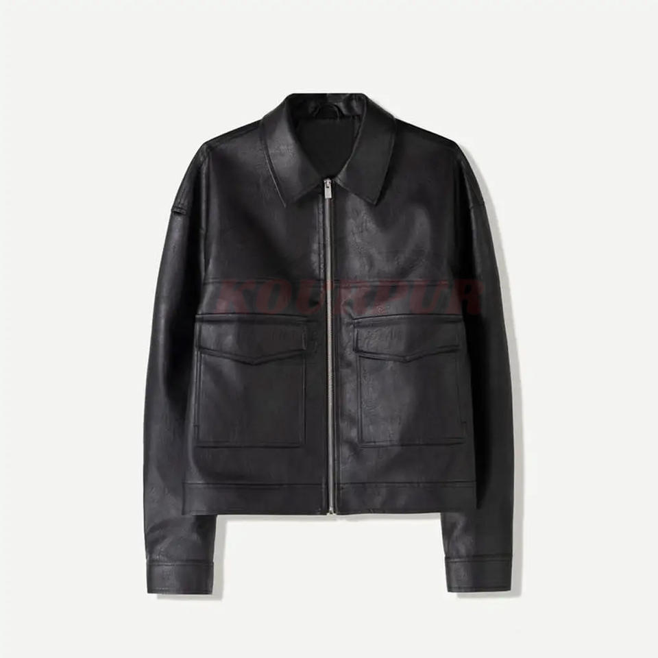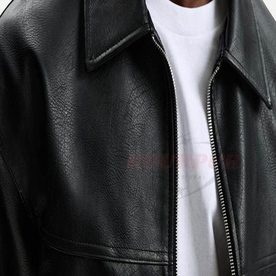 Chaqueta de cuero para hombre de alta calidad en color negro con bolsillos, moderna, elegante y cómoda a un precio razonable.