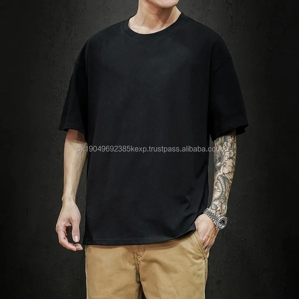 Camiseta de Alta Calidad para Hombre, Lujosa, Gruesa, 100% Algodón, Talla Grande, Cuello Redondo, Estilo Holgado, en Venta