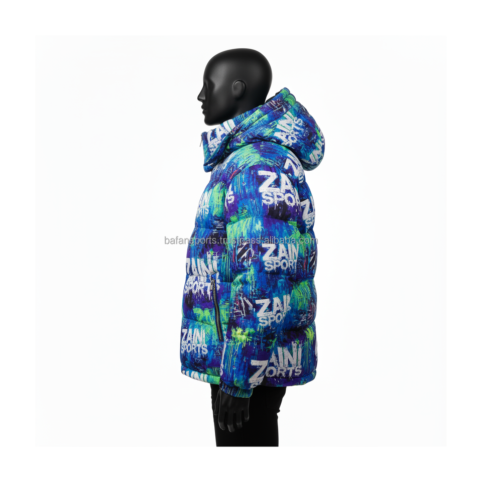 Chaqueta acolchada de alta calidad para hombre, tela de poliéster resistente, abrigo de invierno grueso y cálido, chaqueta acolchada con diseño estampado azul y verde para hombre