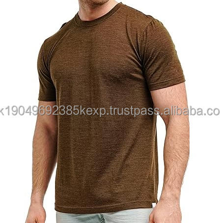 Camiseta de Manga Corta de Lana para Hombre de Alta Calidad, Ajustada, Musculosa, para Gimnasio, Cuello Redondo, Transpirable