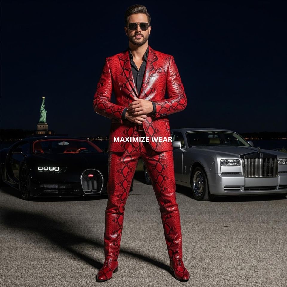 Nombre del producto:Traje de cuero con estampado de serpiente para hombre