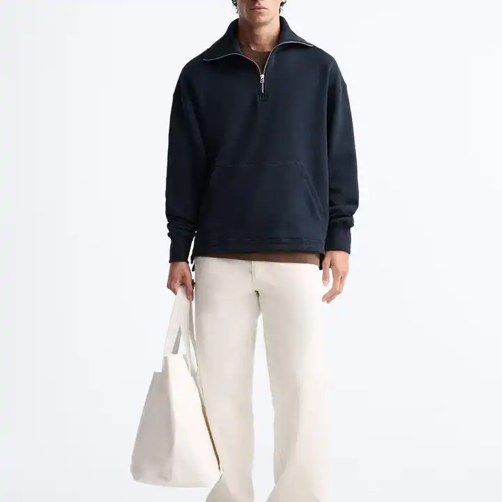 Sudadera con capucha y cremallera de cuarto de algodón 100% para hombre de alta calidad, Sudadera de manga larga con cuello simulado con patrón bordado para otoño