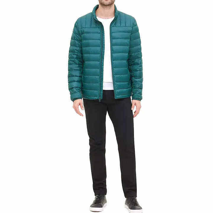 Chaqueta acolchada de lona negra para hombre de alta calidad para invierno, abrigo de burbujas para clima frío con cuello levantado y capucha