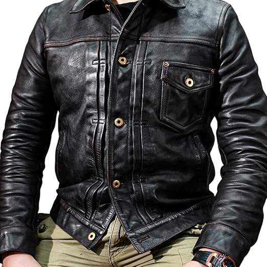 Chaqueta de cuero de vaca de alta calidad para hombre Slim Fit con cierre de botón de cuello alto cuero pesado genuino directo de fábrica