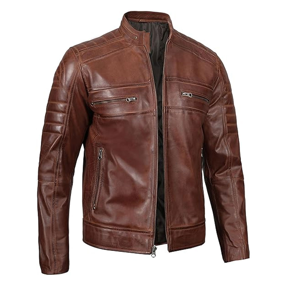 Chaqueta de cuero genuino para hombre de alta calidad, cuello levantado transpirable y recubierto, precio barato