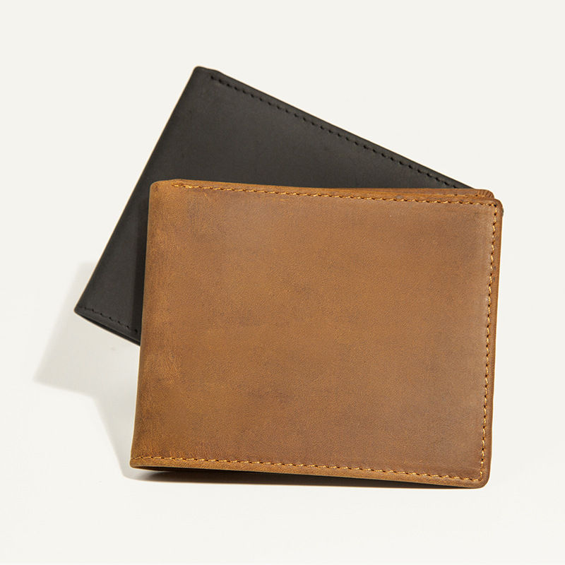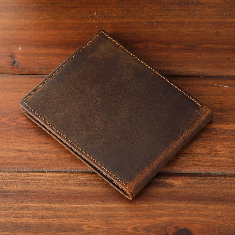 Cartera de Cuero Genuino para Hombre de Alta Calidad, Estilo Vintage, Corta, Impermeable, con Cierre Personalizado, Forro de Poliéster, Multifuncional y de Gran Capacidad