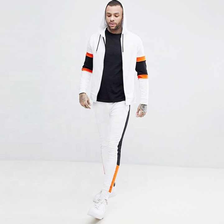 Sudadera con capucha de alta calidad para hombre, traje de chándal con cremallera frontal, color blanco