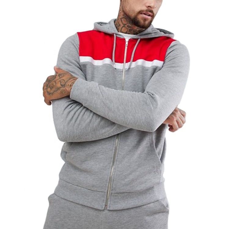Chándal ajustado de alta calidad para hombre, conjunto de Sudadera con capucha y cremallera, puños ajustados, para correr, traje de sudor de bloque de Color