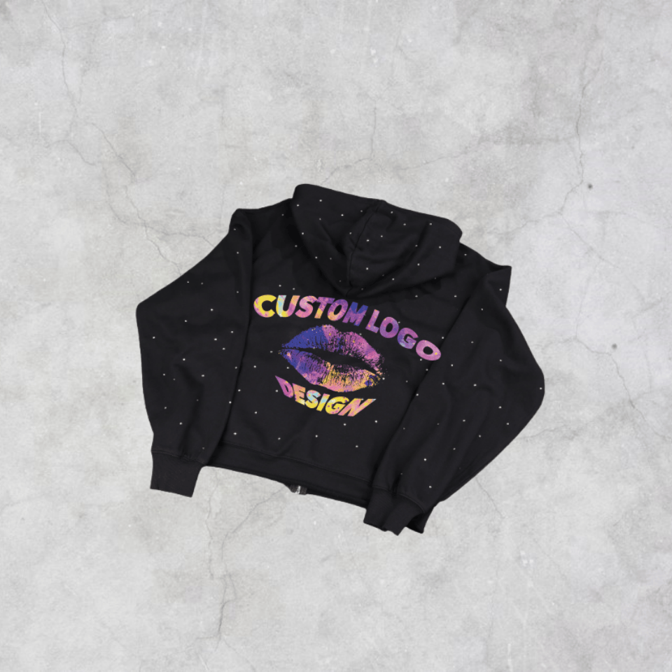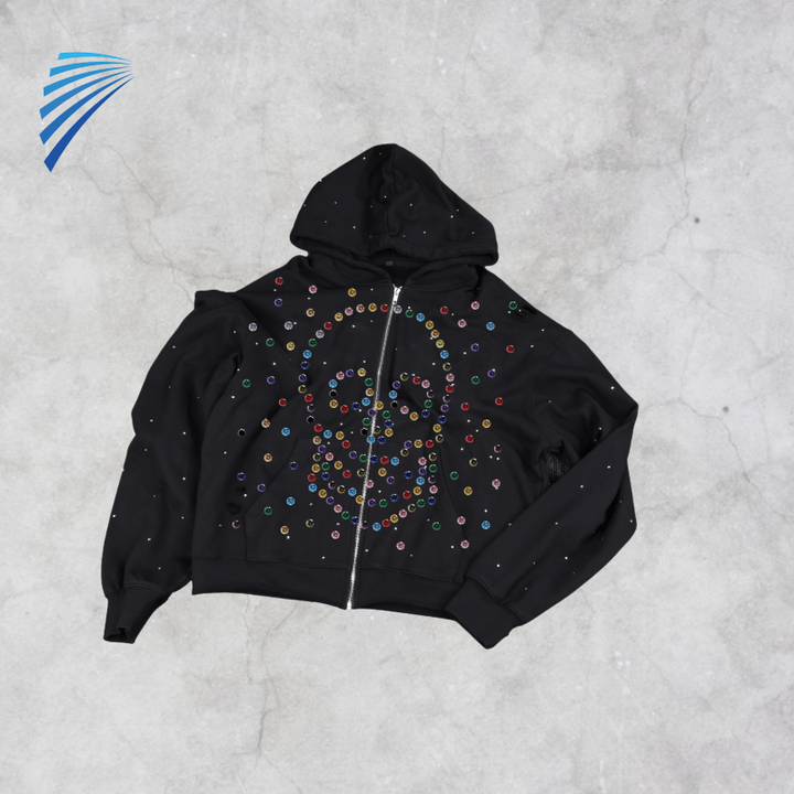 Sudadera con capucha para hombre de alta calidad Diseño de lavado ácido con diamantes incrustados Sudadera con capucha estampada antiarrugas