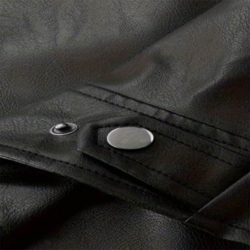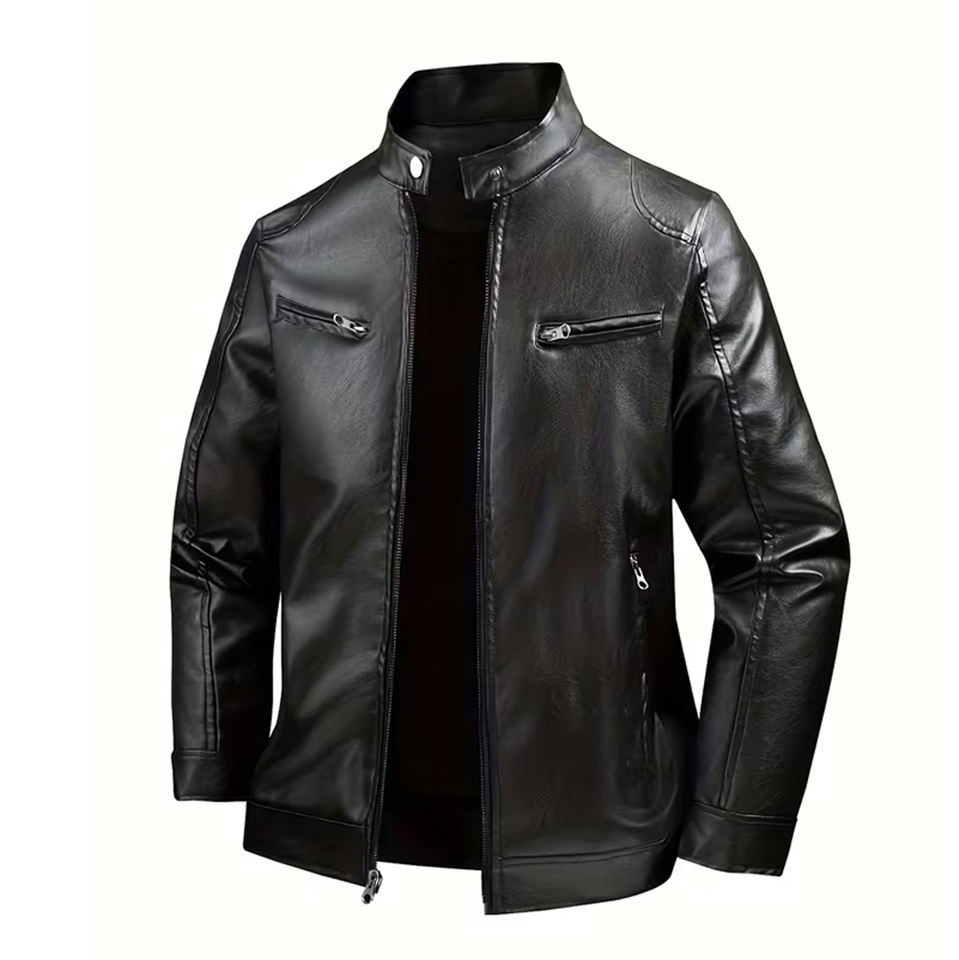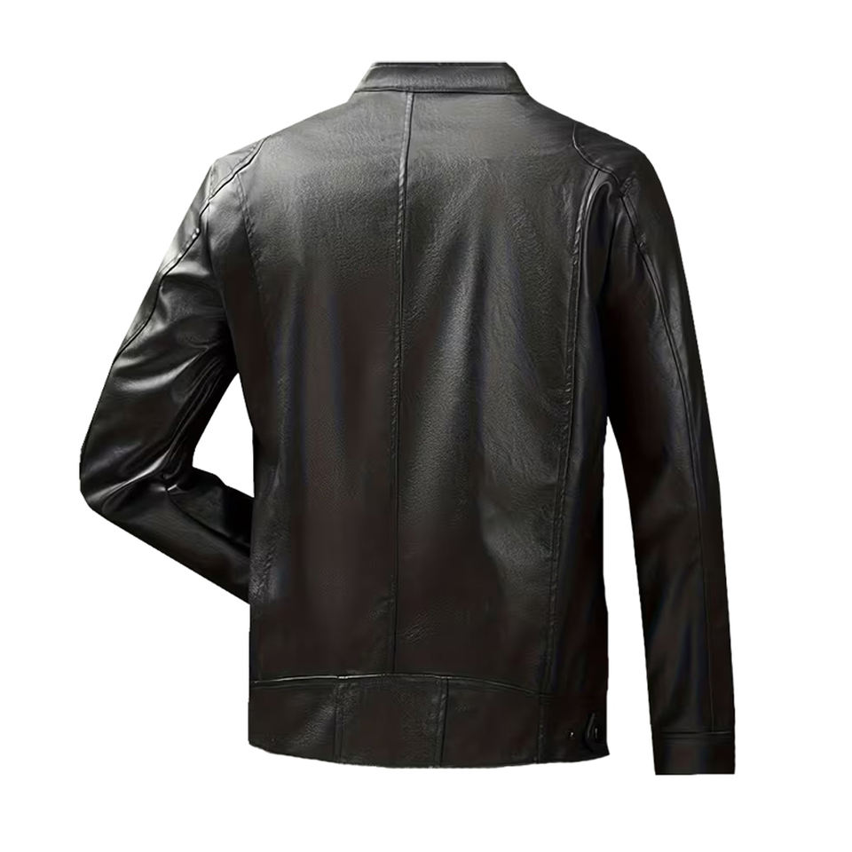 Chaqueta de Cuero para Hombre de Alta Calidad, Color Negro, Cierre de Cremallera Delantero, Cuatro Bolsillos, Estilo Casual, Abrigo de Cuero Cálido para Invierno para Adultos