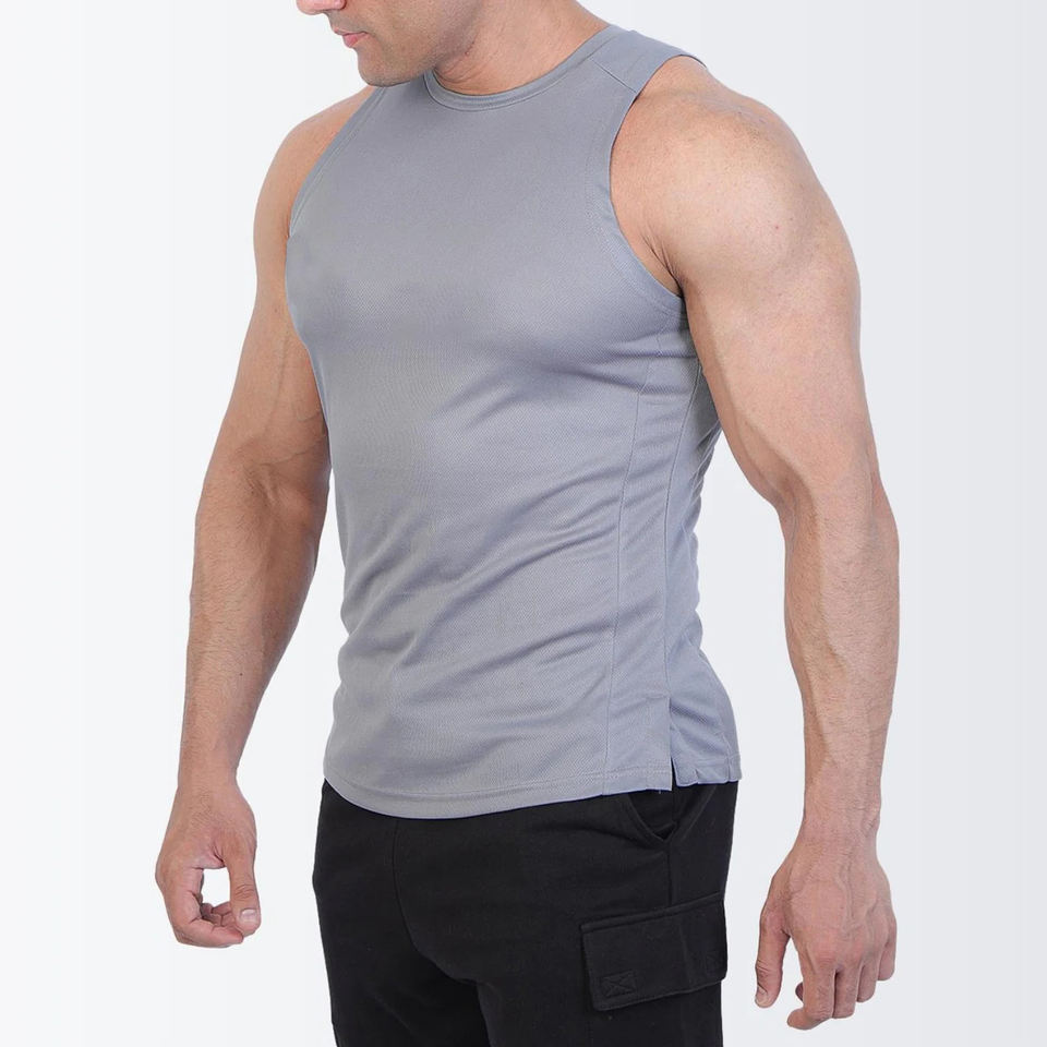 Camiseta sin mangas de alta calidad para hombre, camiseta de poliéster de Color sólido para entrenamiento, correr, excelente calidad con decoración impresa
