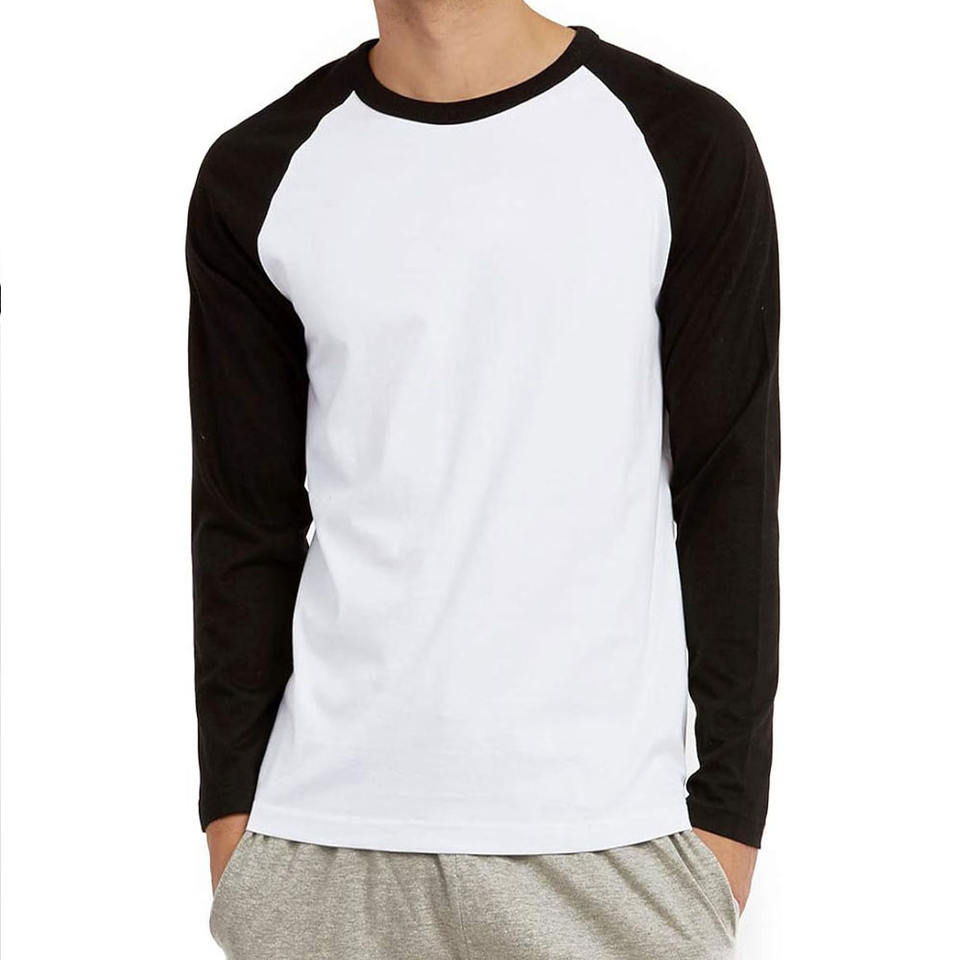 Camiseta de Manga Larga Raglán para Hombre de Alta Calidad, Material de Algodón, Lisa, Personalizada, Cuello Redondo, Transpirable