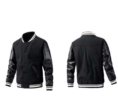 Chaqueta universitaria de alta calidad para hombre, chaquetas de béisbol Unisex en blanco con retazos de PU personalizadas para CollegeBaseballjacket para hombre