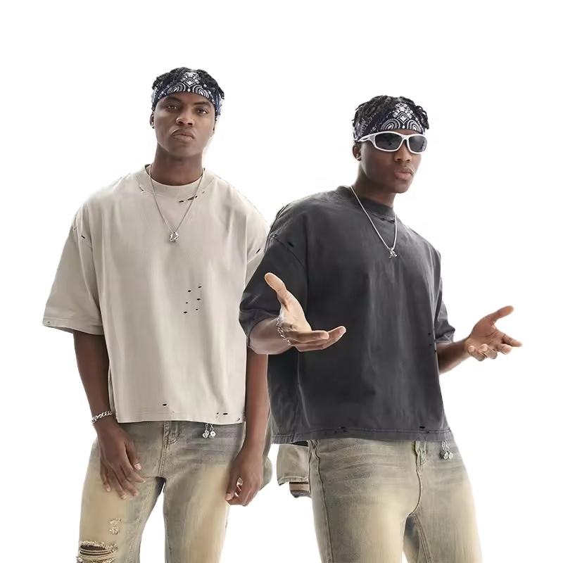 Camiseta desgastada de alta calidad para hombre, camiseta de manga corta de color sólido Boxy Fit para hombre