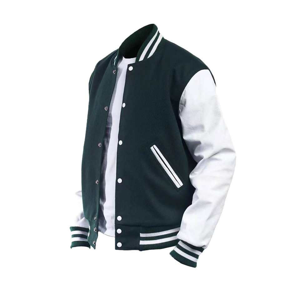 Chaqueta universitaria de béisbol de alta calidad para hombre, venta al por mayor, Diseño de manga bordada con logotipo personalizado OEM