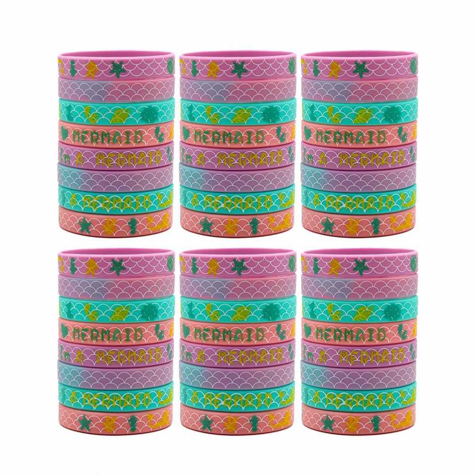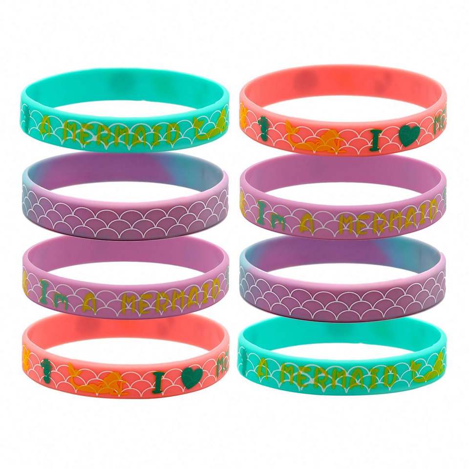Pulsera de Silicona de Alta Calidad con Diseño de Sirena, Patrón de Dibujos Animados, Colorida, Impresa