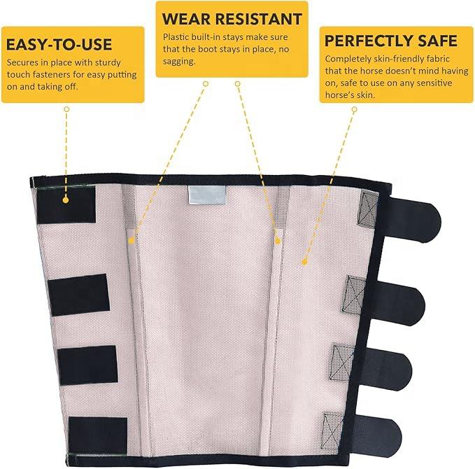 Botas de mosca de malla de alta calidad para caballo Malla de plástico Producto ecuestre altamente transpirable Botas de malla de mosca de caballo para caballos