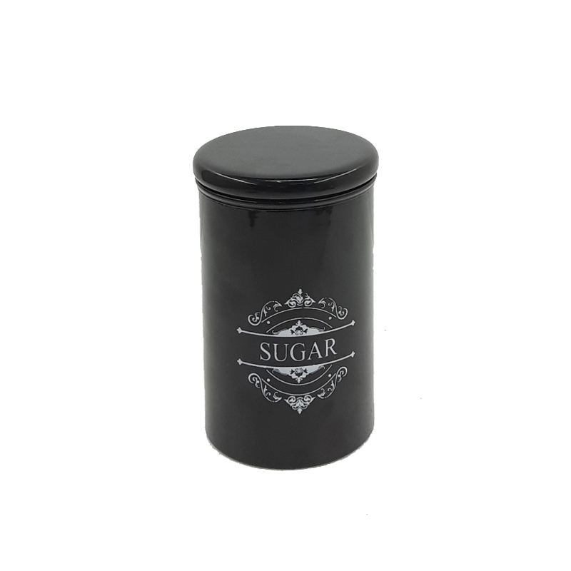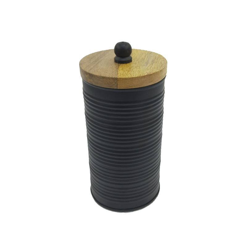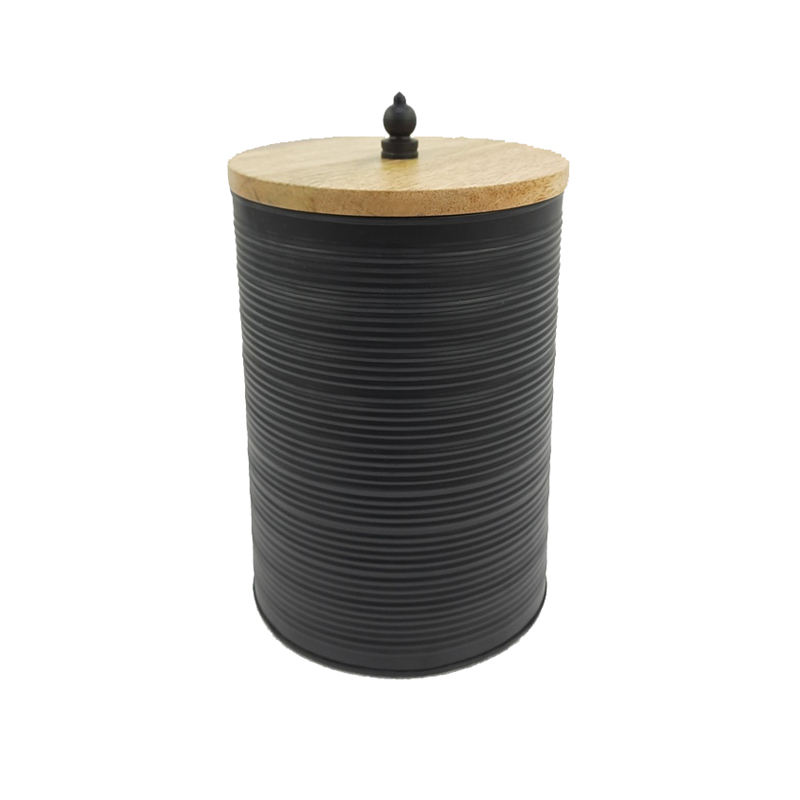 Caja de almacenamiento de forma redonda de Metal de alta calidad con tapa Acabado negro para utensilios de cocina Caja de almacenamiento de alimentos de mesa