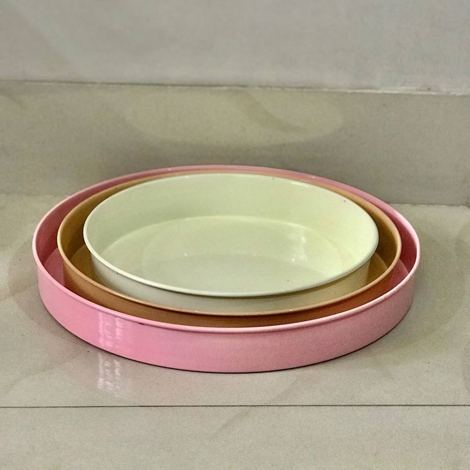 Juego de 3 bandejas de Metal de alta calidad para decoración del hogar, bandeja redonda con acabado de Pantone grande, para uso en bodas