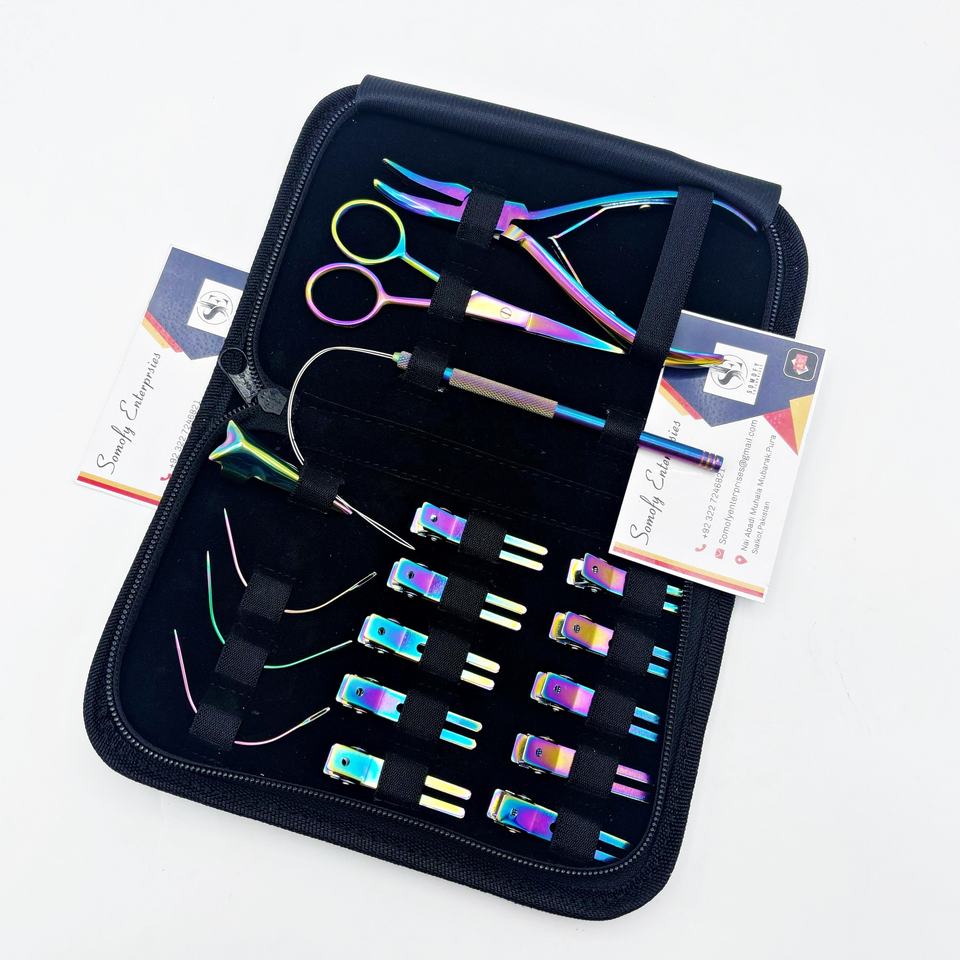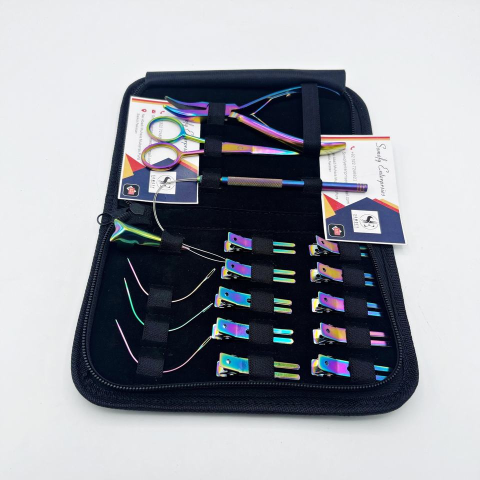 Kit de alicates de microcuentas de alta calidad para extensiones de cabello de salón Etiqueta privada Revestimiento de plasma de arco iris Estilismo de metal sostenible