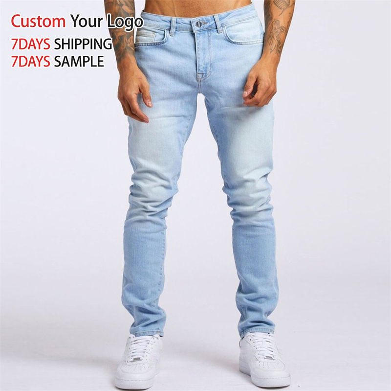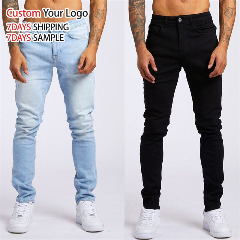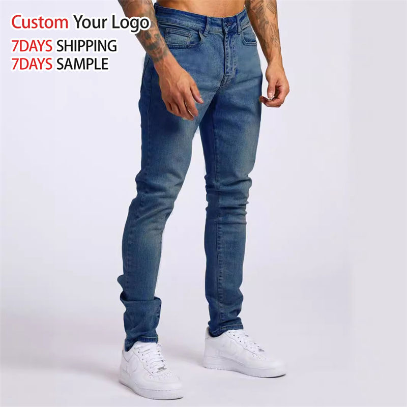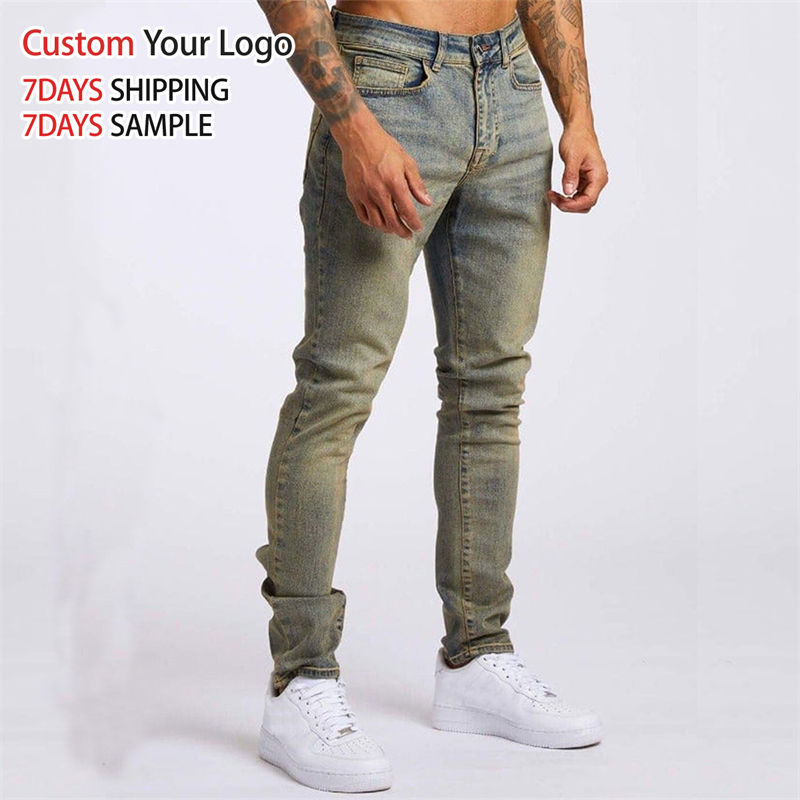 Jeans de Mezclilla Elásticos Transpirables de Cintura Media de Alta Calidad con Agujeros, Ajustados, Elásticos, Personalizados, Casuales, Rectos, Ajustados, para Hombre