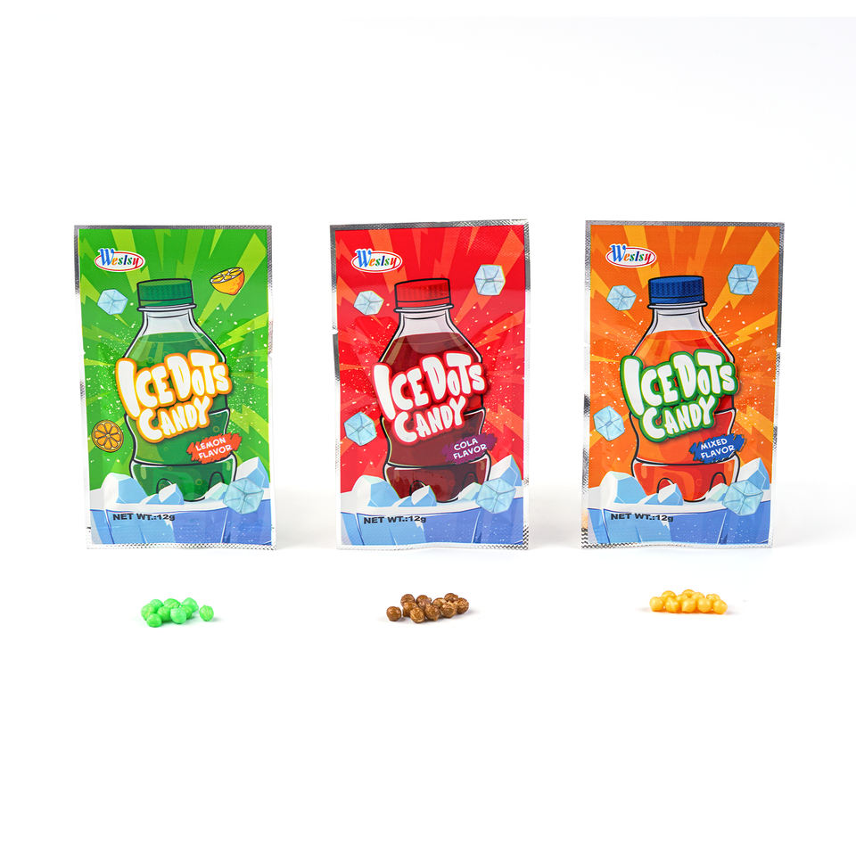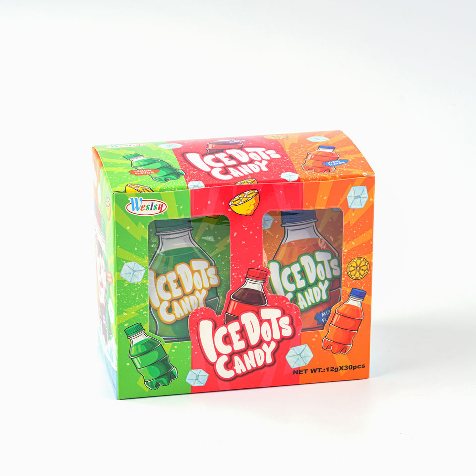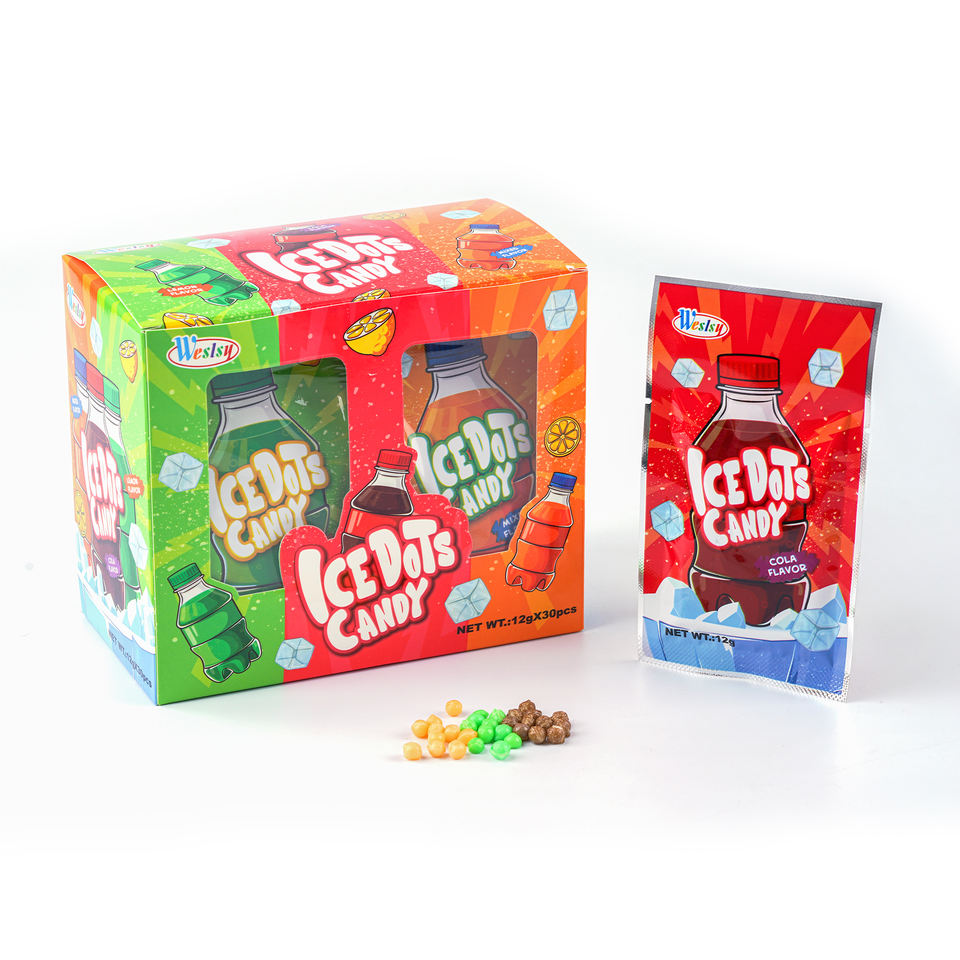 Alta calidad Mini Bite Candy Ice Dots Cola Lemon Soda con sabor a pequeños bombones masticables Dulces Box Halal Kids 'Candy al por mayor