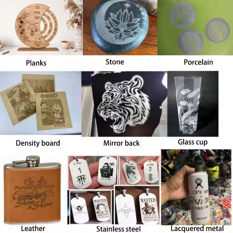 Acrílico, Cristal, Vidrio, De cuero, MDF, Papel, Plástico, Plexiglás, Contrachapado, Caucho, Piedra, MaderaMaterial aplicable