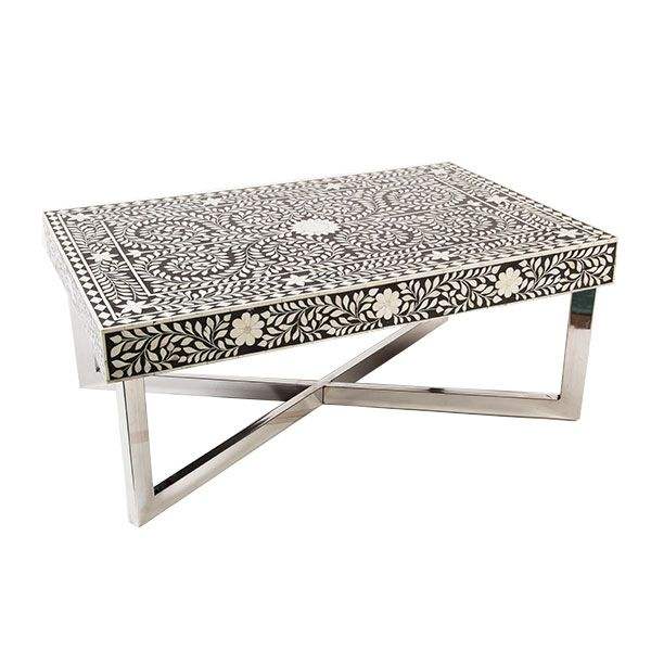 Mesa auxiliar en forma de C con incrustaciones de hueso modernas de alta calidad, patrón de pescado, mesas auxiliares más vendidas, venta al por mayor de fábrica India