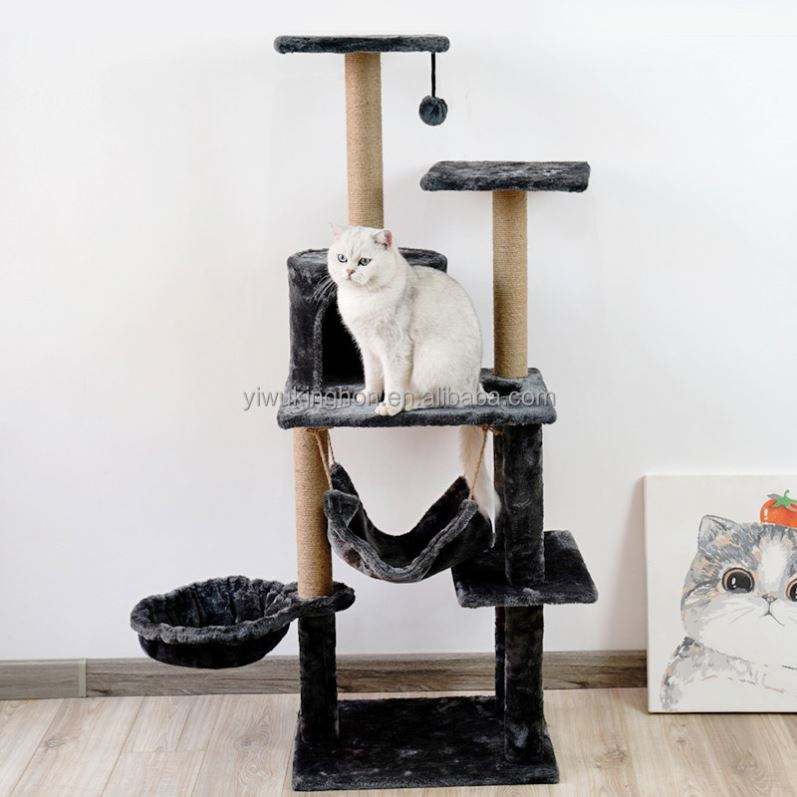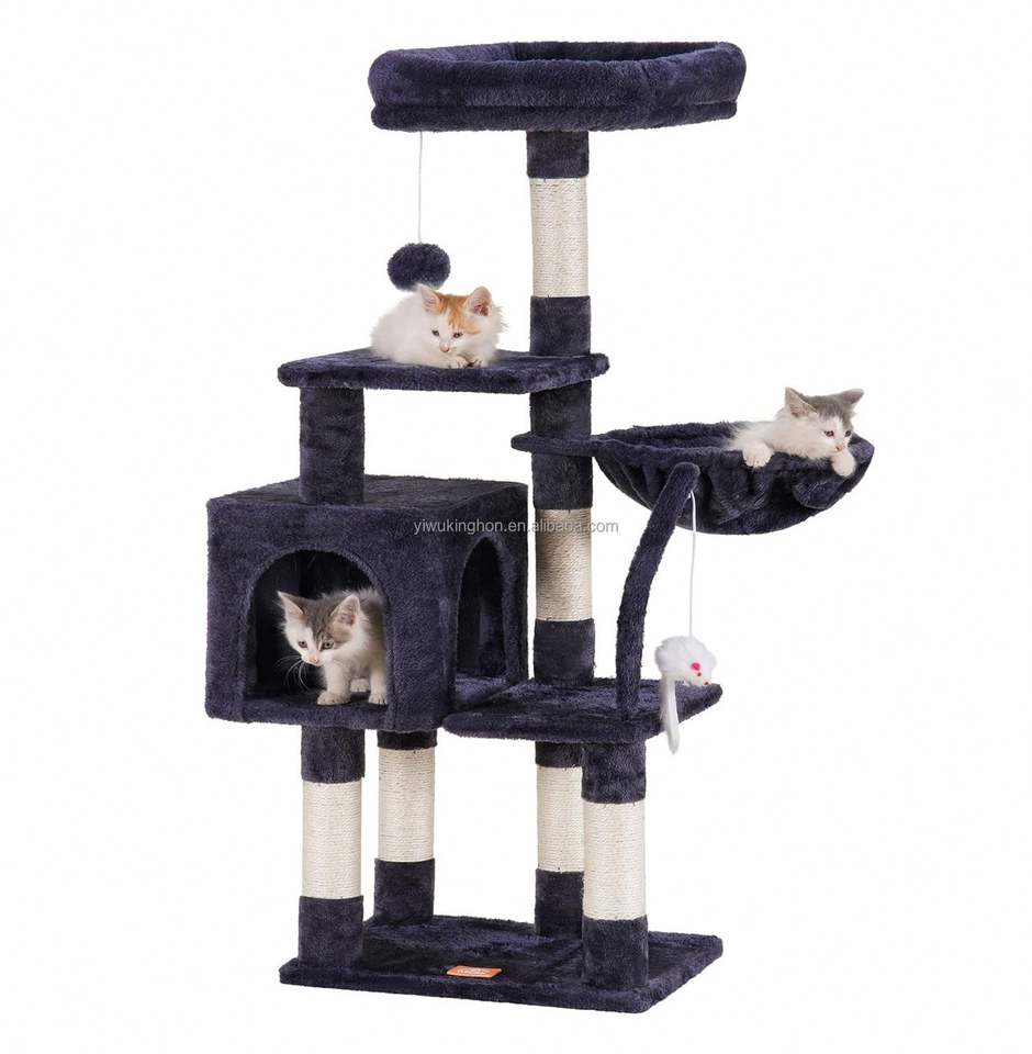 Árbol para Gatos Moderno de Alta Calidad, Casa Tipo Torre, Estructura de Cactus Grande de Madera con Cuerda de Cáñamo, Sisal y Peluche, Muebles para Gatos