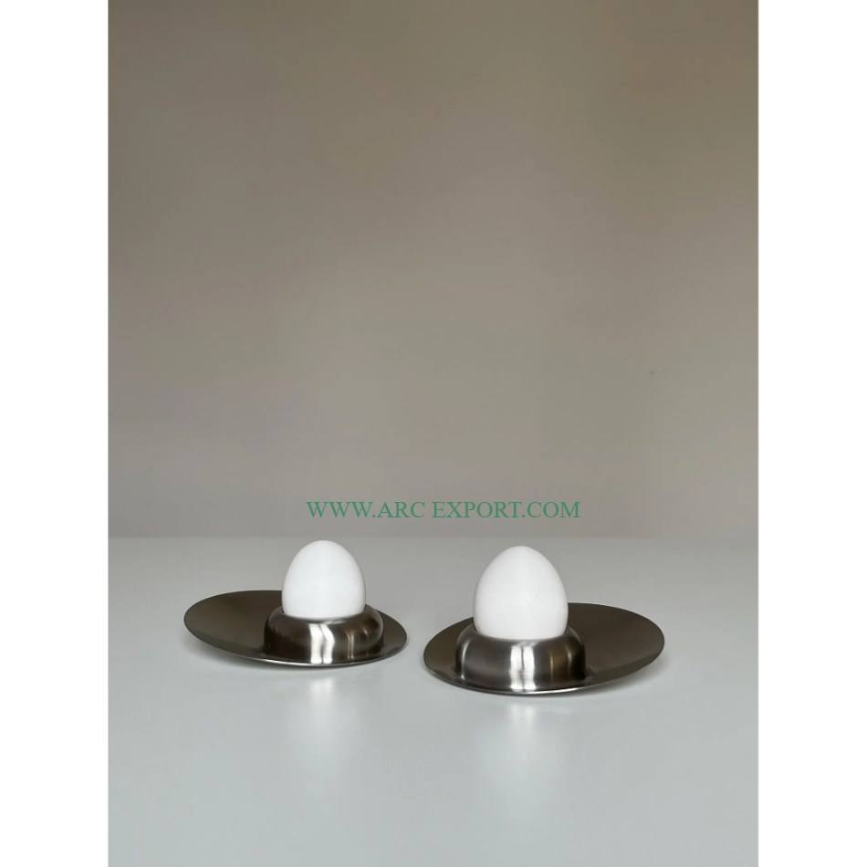 Soporte para Huevos Doble Moderno de Alta Calidad, Ecológico, Hecho de Metal con Acabado Plateado Brillante para Uso en el Hogar o la Cocina