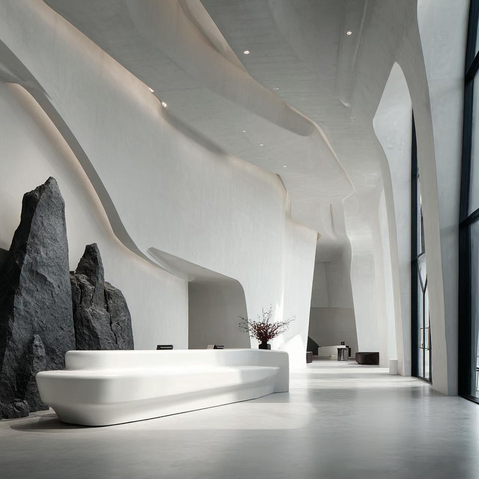Mostrador de Recepción Extensible Moderno de Alta Calidad en Plástico PETG para Uso Comercial en Hoteles, Oficinas, Centros Comerciales, Salones y Spas