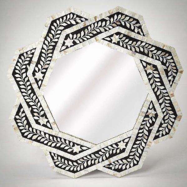 Marco de Espejo Redondo Floral de 3 Capas con Incrustaciones de Hueso de Marfil Moderno de Alta Calidad, Hecho a Mano, Ecológico, para Colgar en la Pared del Hogar