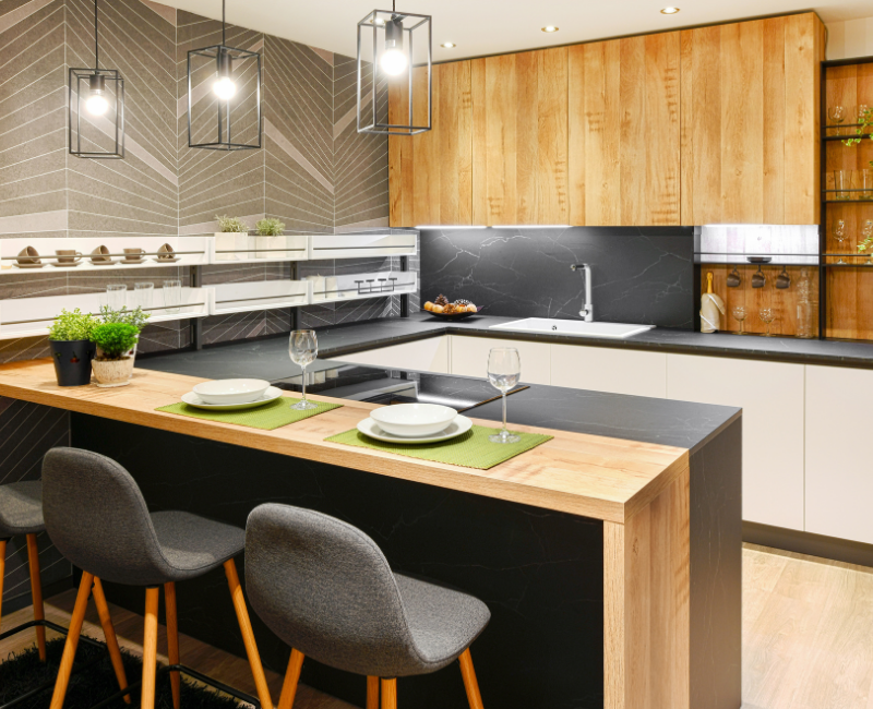 Gabinetes de Cocina Modernos de Alta Calidad, Modulares, de Madera Maciza, con Protector Contra Salpicaduras, para Despensa, Envío Incluido