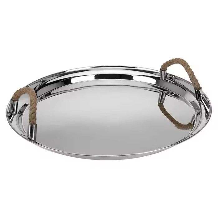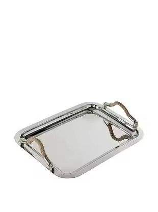 Bandeja de Servicio Rectangular Moderna de Acero Inoxidable y Latón de Alta Calidad con Asas para Uso en Hogar, Hotel, Restaurante y Catering