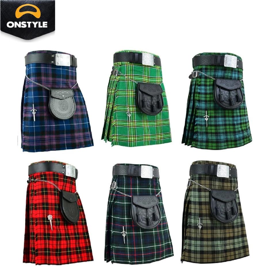 Kilt Tradicional Escocés de Alta Calidad en Acrílico Sólido para Hombre, Traje de las Tierras Altas Escocesas de ONSTYLE SPORTS, 5 Yardas, 13 oz