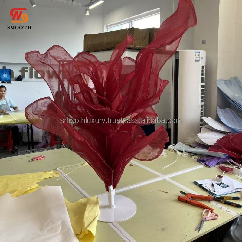 Centro de mesa de pilar de flores de Organza de seda de hierro de estilo moderno de alta calidad para decoraciones de eventos y fiestas de bodas