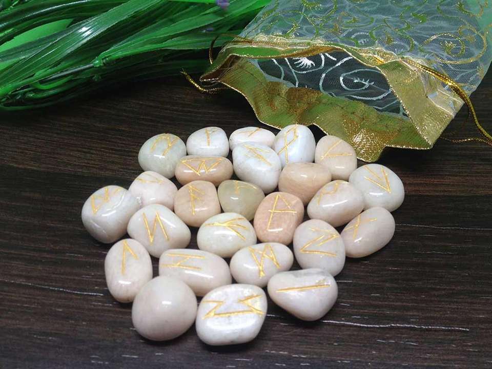 Alta calidad Moonstone Elder Futhark Rune Set Gemstone Runic Set para la curación de Reiki