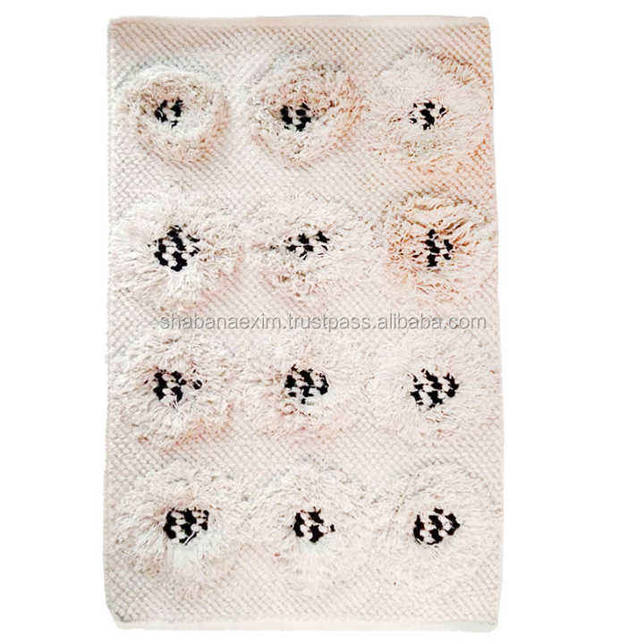 Alfombra de Alta Calidad Estilo Marroquí, Alfombra de Algodón Tufted para Sala de Estar, Alfombra Boho con Aspecto Desgastado de la India