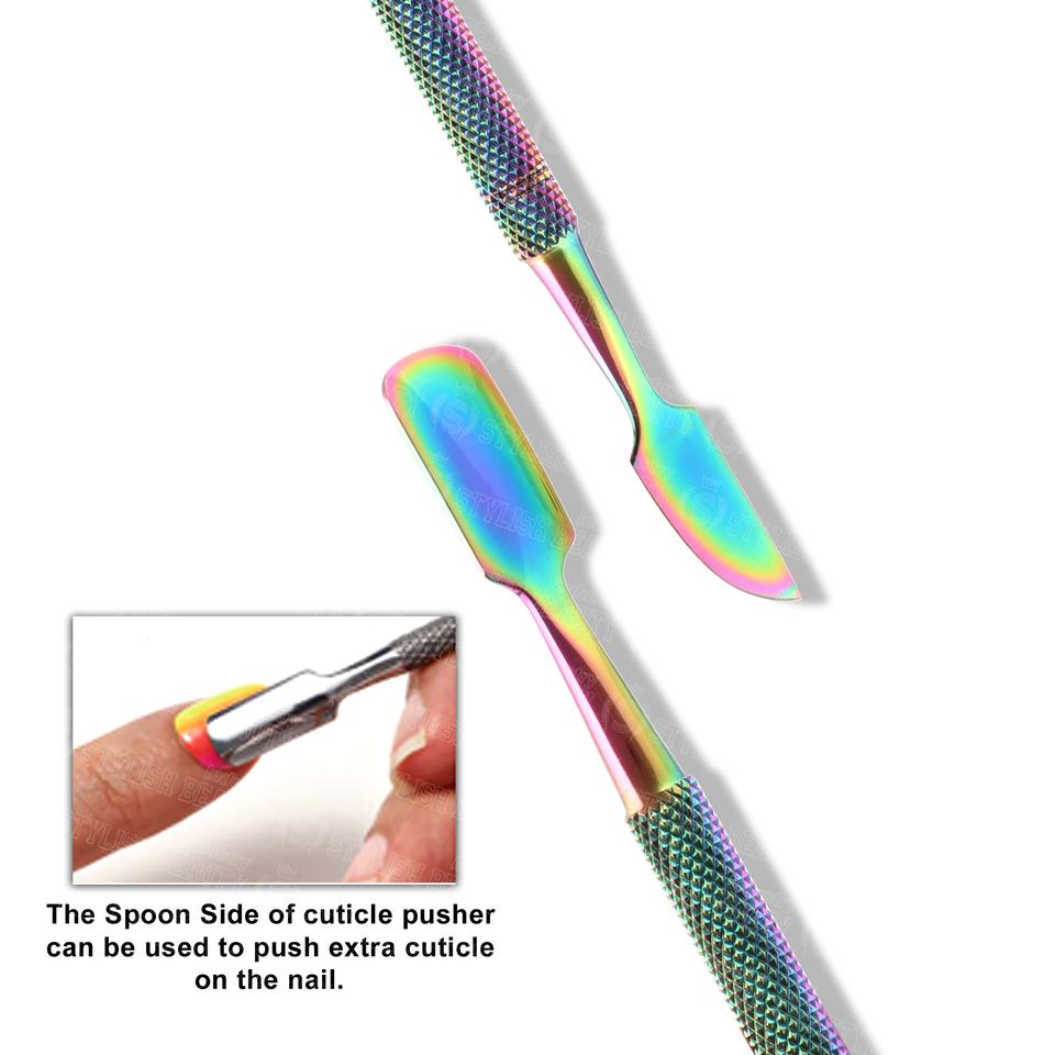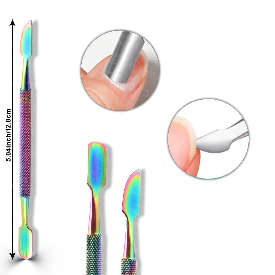 Empujadores de Cutículas de Acero Inoxidable de Doble Punta Multicolores de Alta Calidad para Manicura, Pedicura y Cuidado de Uñas