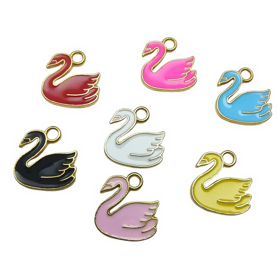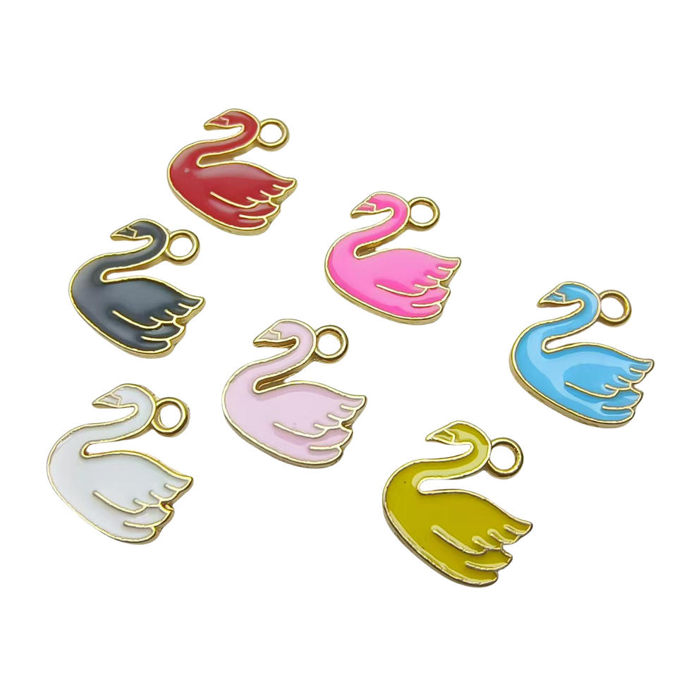 Colgante de cisne de aleación de Zinc dorado clásico Multicolor de alta calidad, estilo de gota de aceite para joyería de animales para niños