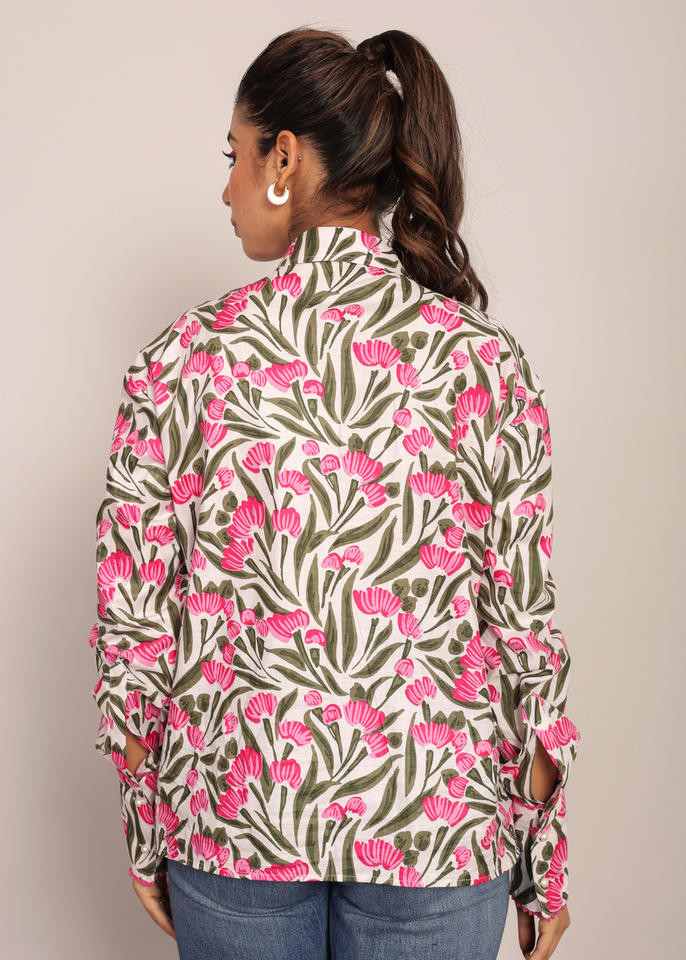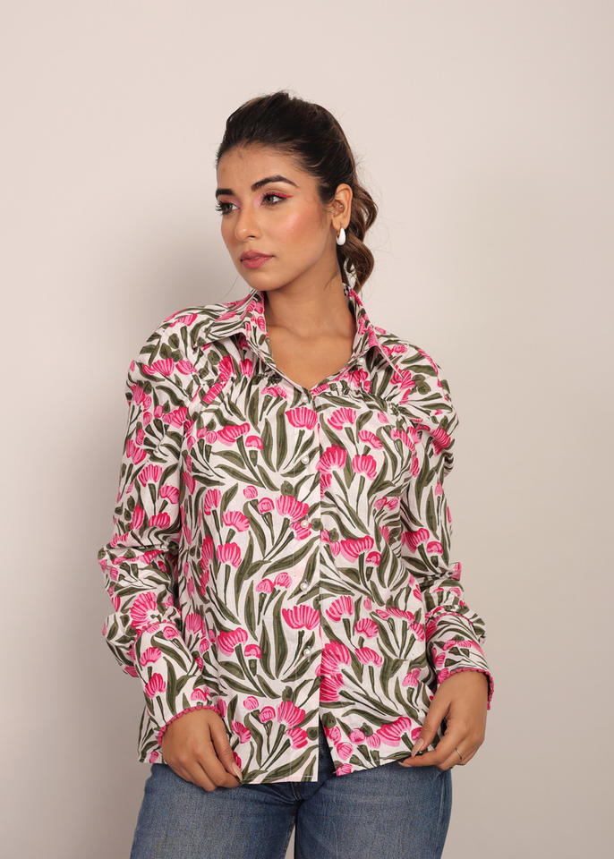 Camisa relajada de verano Floral Multicolor de alta calidad con cuello escote elegante mujer ropa al por mayor Tops con estampado Floral